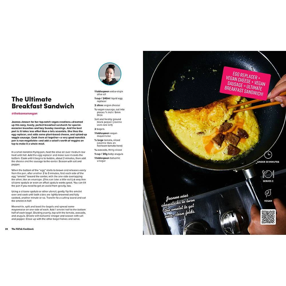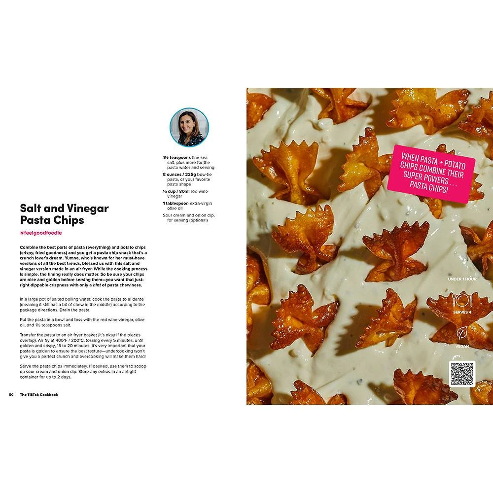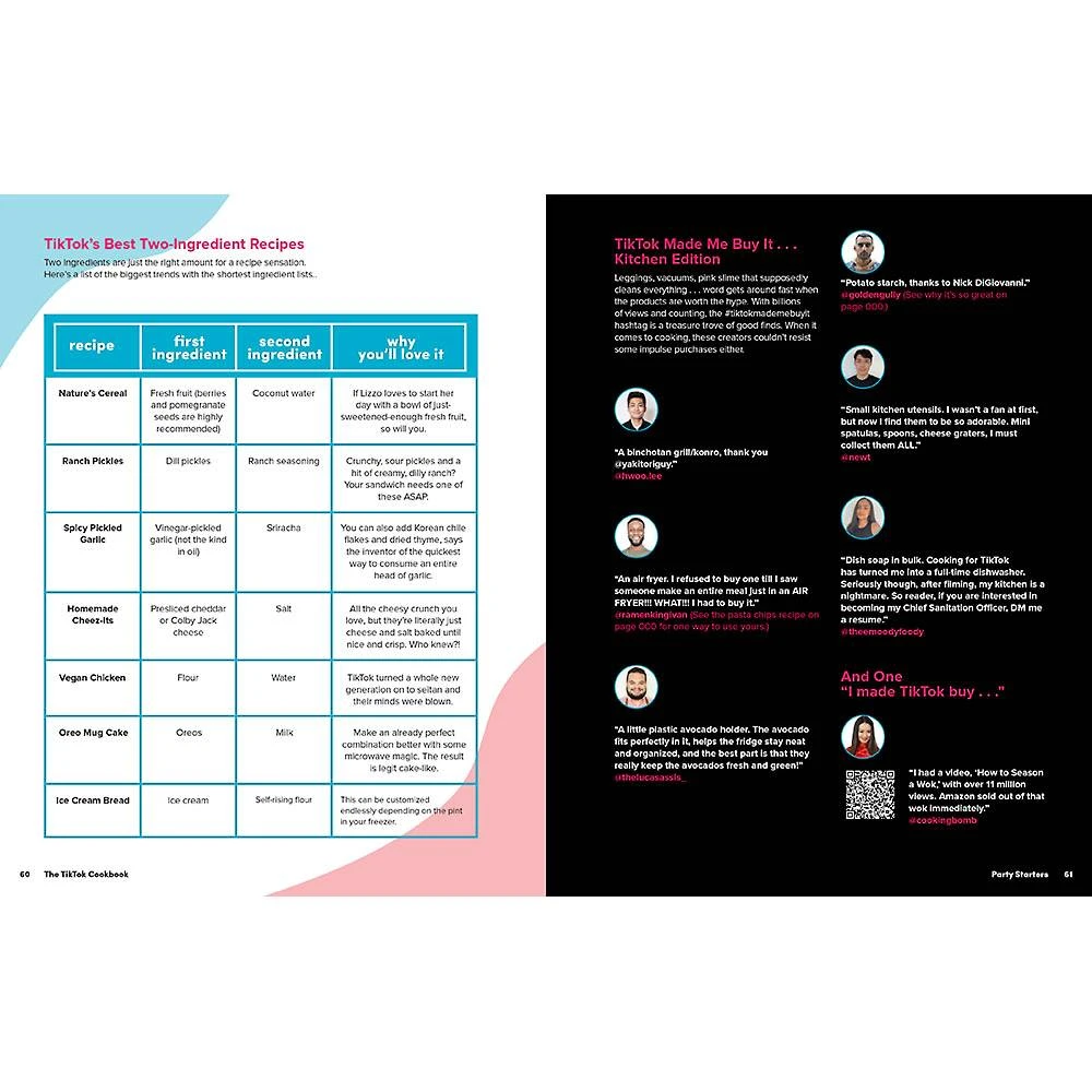 Featuring over sixty recipes from more than forty food creators on the platform, As Cooked on TikTok offers something different and delicious on every page. There’s The Ultimate Breakfast Sandwich from The Korean Vegan, Grilled Jalapeño Corn Off the Cob from Cooking with Shereen, Ramen Carbonara from Cooking with Lynja, Bang Bang Shrimp from Newt, and Strawberry Cream Puffs from ScheckEats-plus tips and techniques from TikTok star chefs like Ming Tsai, Alex Guarnaschelli, and The Pasta Queen, among others. Each recipe has not only been tested and vetted for home kitchens, but also includes a QR code to scan so you can go straight to that creator’s page. It’s like making a meal with the creator right in your kitchen with you!