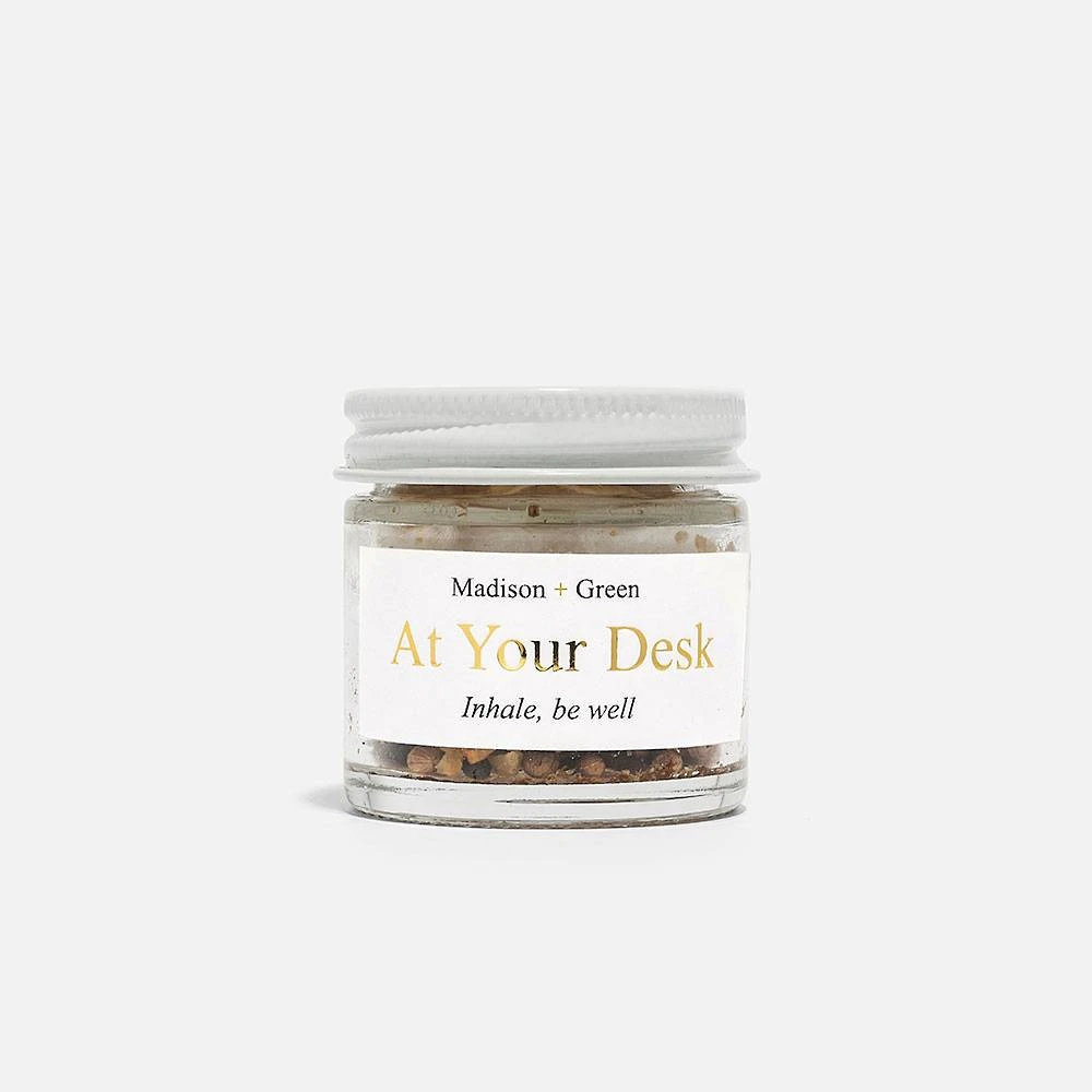 Madison + green aromatherapy stress relievers are stimulating yet soothing inhalers designed to help relieve stress for everyday use. The jars are filled with aromatic herbs and spices, inspired by traditional Chinese medicine, and blended with essential oils, formulated by a clinical aromatherapist. Use the inhaler to feel refreshed while working or studying. – Reduces stress related to anxiety, overwork, and frustration- Soothes and calms the mind- Improves concentration and multi-tasking. Directions: Hold the jar 3~4″ away from your nose, deeply inhale for 4 seconds, then slowly exhale for 6 seconds. repeat as necessary.