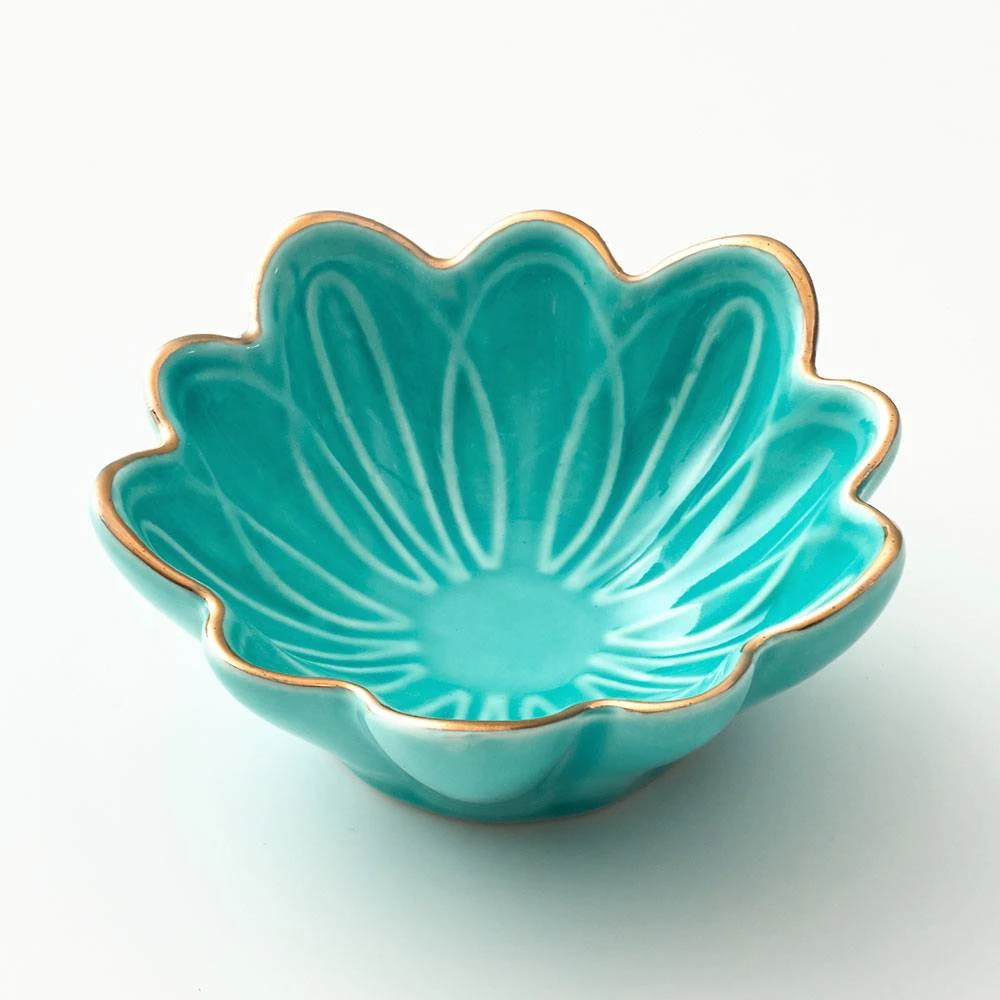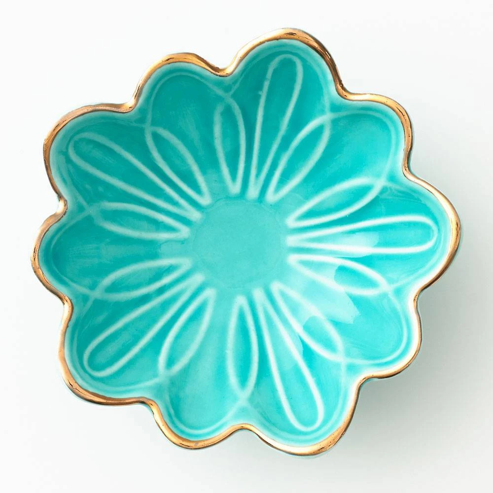 This gorgeous trinket bowl is a wonderful gift to give girlfriends or even a bride for something blue for a big day! It’s made to look like a beautiful lotus flower in a vibrant teal blue and has a gold rim!