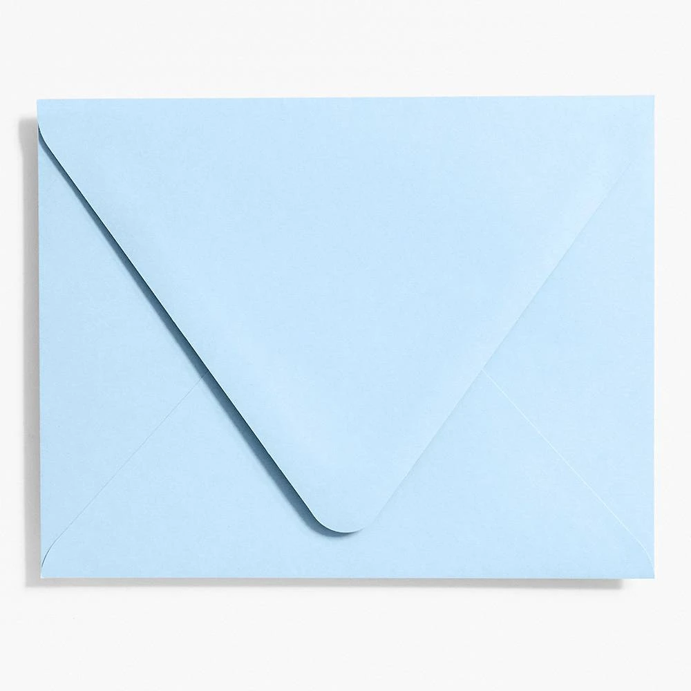 Our stylish European inspired pointed flap envelope constructed from cover weight paper giving it the heft and importance in a size that no one will ever ignore. In bluebell, a calm, adult sky blue without a trace of sappiness.
