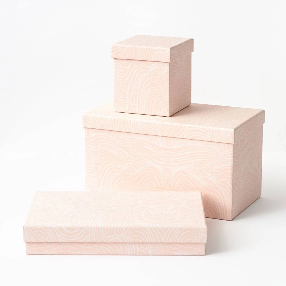 Your gift is sure to make a statement in this gorgeous gift box! Our blush gift box features a fun and unique wave design. Whether you are using these for gift wrapping, DIY projects or stylish storage, these boxes are ideal to reuse again and again. Paper Source designed.
