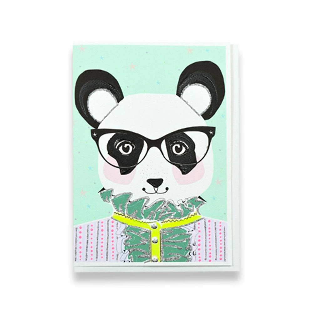 Send this glittering greeting card with a very proper looking panda. Blank inside. Paired with coordinating envelope. Designed by Verrier.