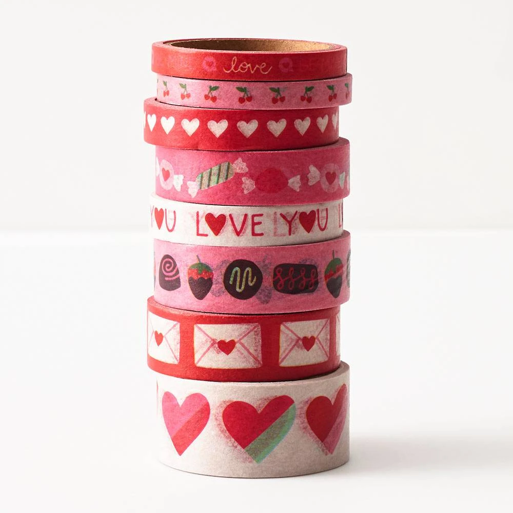 Add some extra love to your Valentine cards and crafts. The set of eight washi tapes features multiple widths with candy and heart patterns ready to add literal sweet touch!