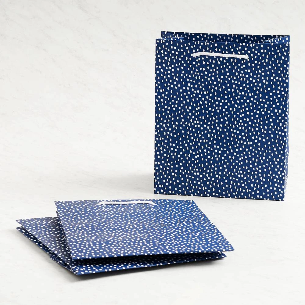 Make sure your thoughtful gift is beautifully wrapped by choosing a stylish gift bag. Navy bag features a fun white polka-dot design. Embellish with ribbons and bows and you have a stunning gift. Includes a sturdy white cord handle.