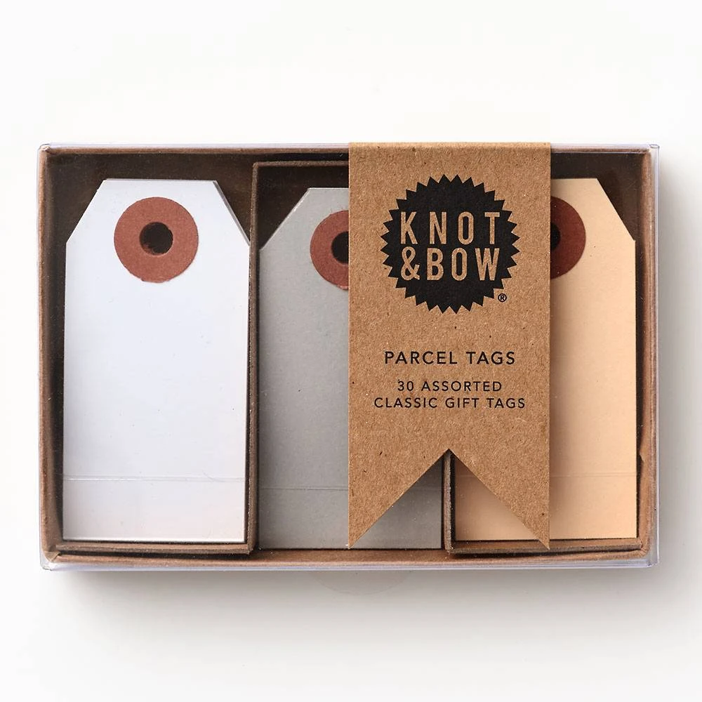 Mix, mingle, and match with pre-packaged parcel tag trios – the perfect box set for label lovers. Cut from thick cardstock with a reinforced hole for each threading, this box provides all the options for a personalized gift wrap!