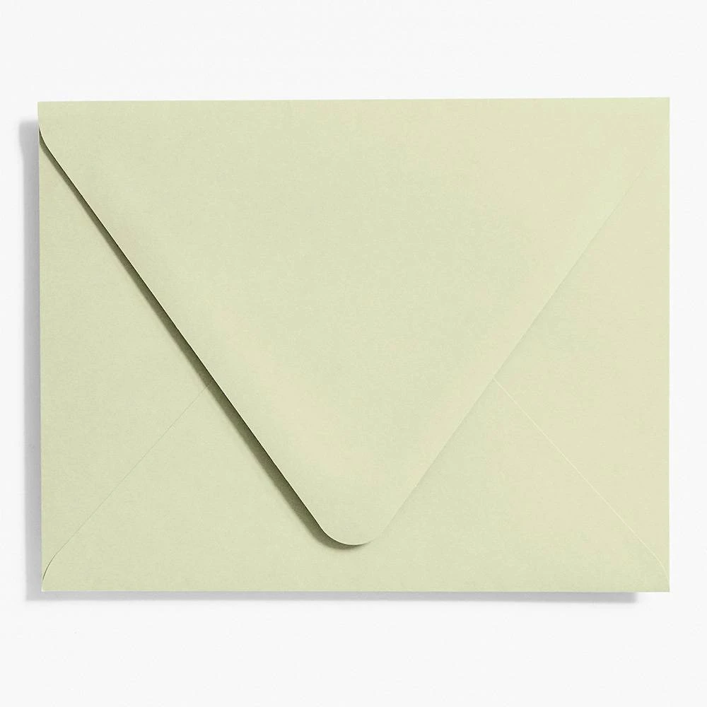 Our stylish European inspired pointed flap envelope constructed from cover weight paper giving it the heft and importance in a size that no one will ever ignore. In our soft sophisticated lovely gray green.