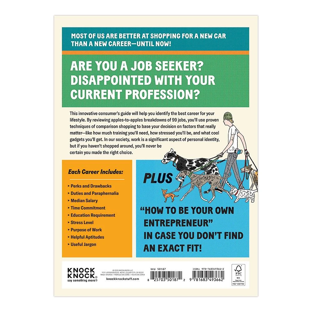 Is your current job getting you down? Ready to find a new profesh but donโt know where to start? This fun and functional consumer guide will help identify the best path for you. By reviewing apples-to-apples breakdowns of ninety-nine career choices, youโll use proven techniques of comparison shopping to base your decision on things that really matter, like if thereโs opportunity for growth, flexible hours, or plenty of free, high-quality snacks.