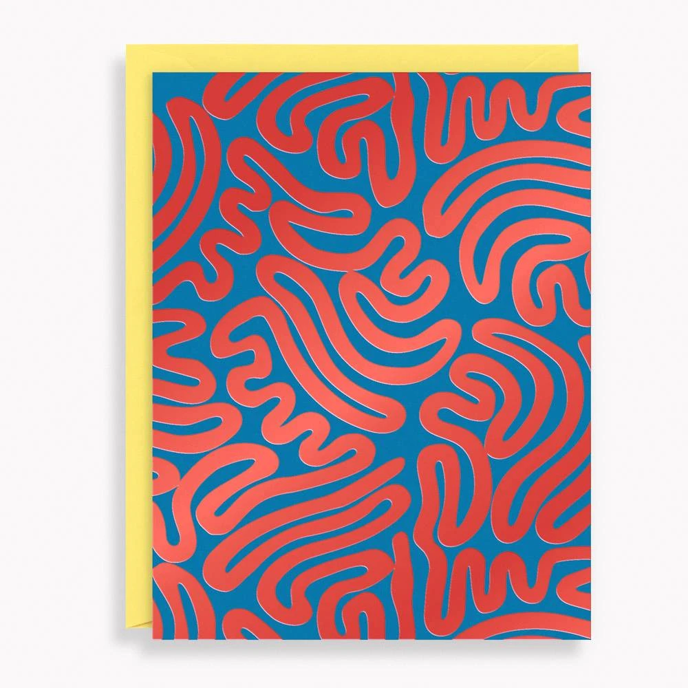 Foiled squiggle waves folded card, perfect for any occasion! Blank inside for your personal sentiments. Set of 10, five in each design. Comes with envelopes in the color Sunshine.