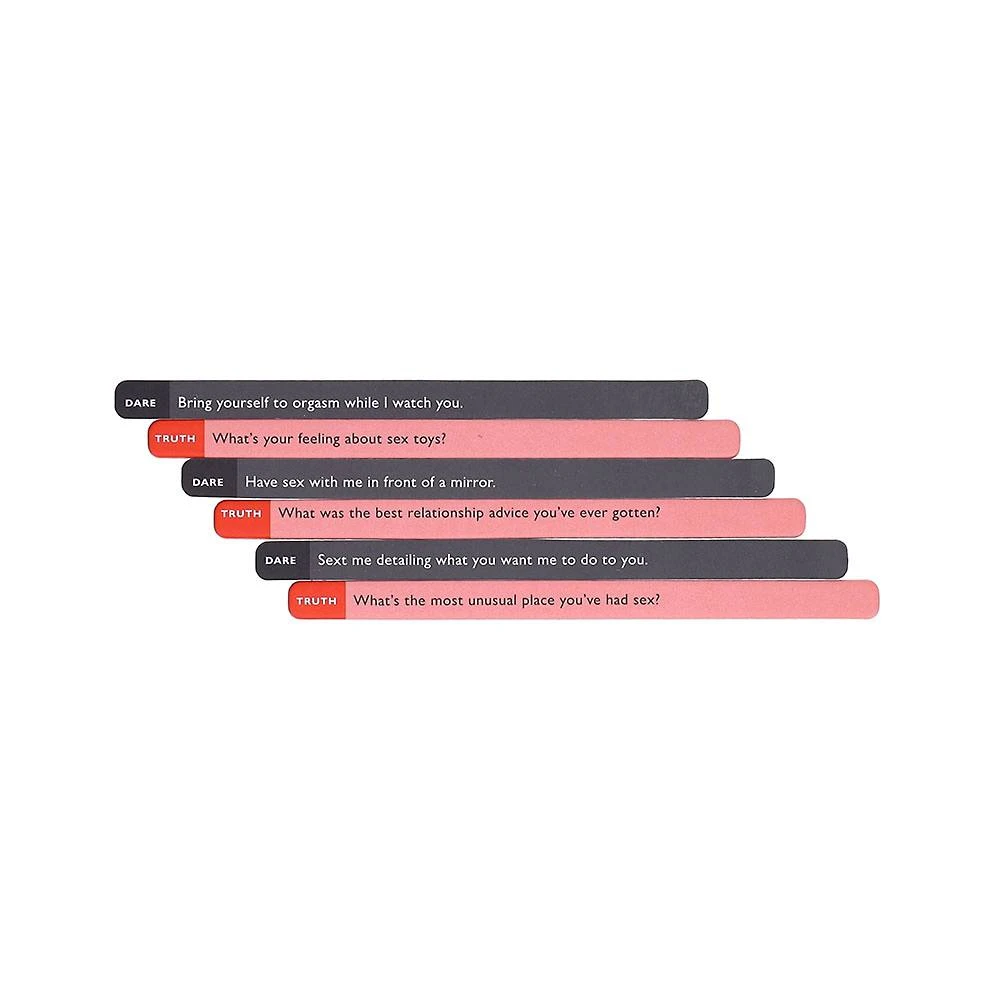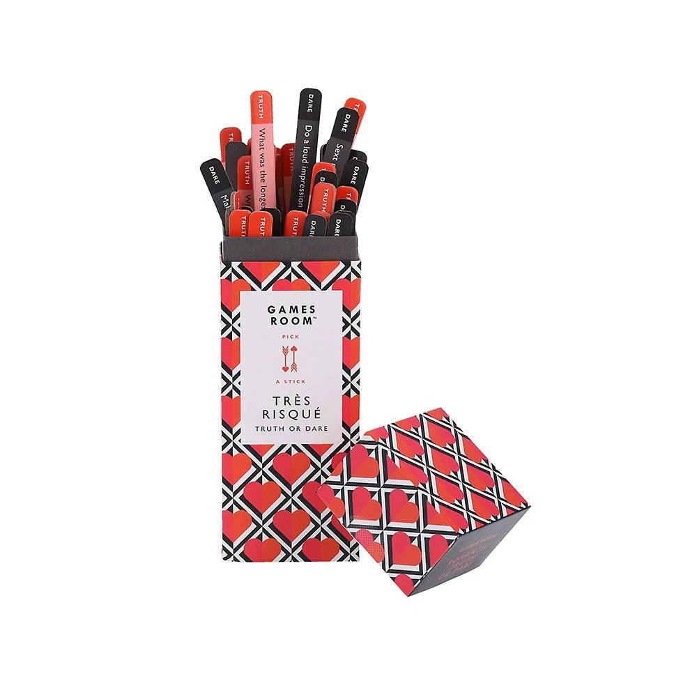 Find out your partner’s dirty little secrets or try something totally surprising and new with this intimate truth or dare game! Featuring 100 sweet and sultry prompts on 50 double-sided sticks, these couples-only questions and tantalizing dares, along with the gorgeous packaging, make this the perfect game to explore your relationship or dare to try something new on date night!